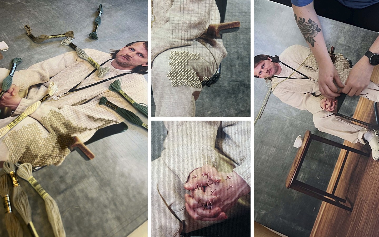 The embroidery is made by hand and represents tactile processes, which we have all been in contact with at school.